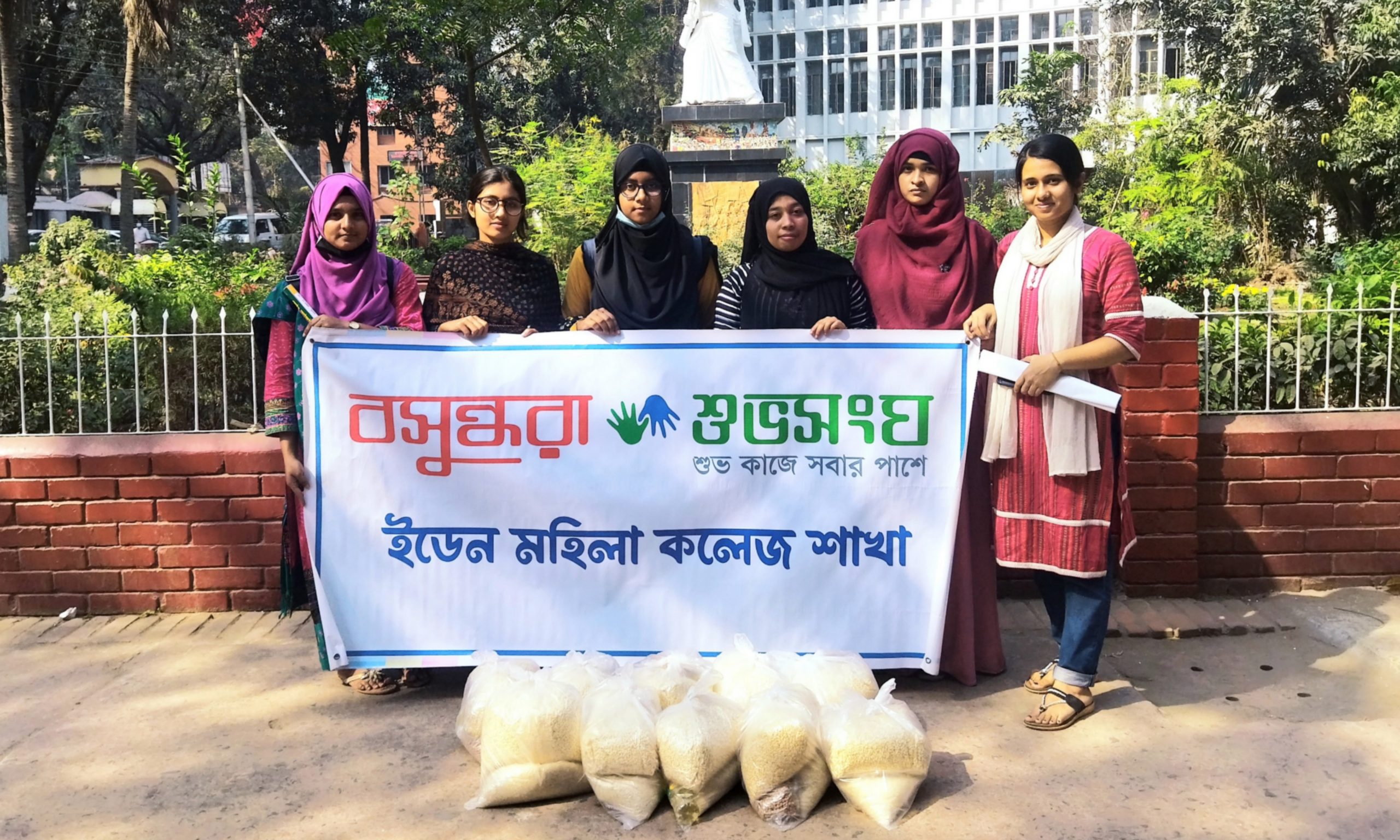 আজ মঙ্গলবার (১২ মার্চ) দুপুরে রাজধানীর আজিমপুর এলাকায় ১০ জন অসচ্ছল মানুষের মাঝে এ খাদ্য সহায়তা প্রদান করা হয়। বসুন্ধরা শুভসংঘ ইডেন মহিলা কলেজ শাখার আয়োজনে এ সহায়তা কার্যক্রম অনুষ্ঠিত হয়েছে।