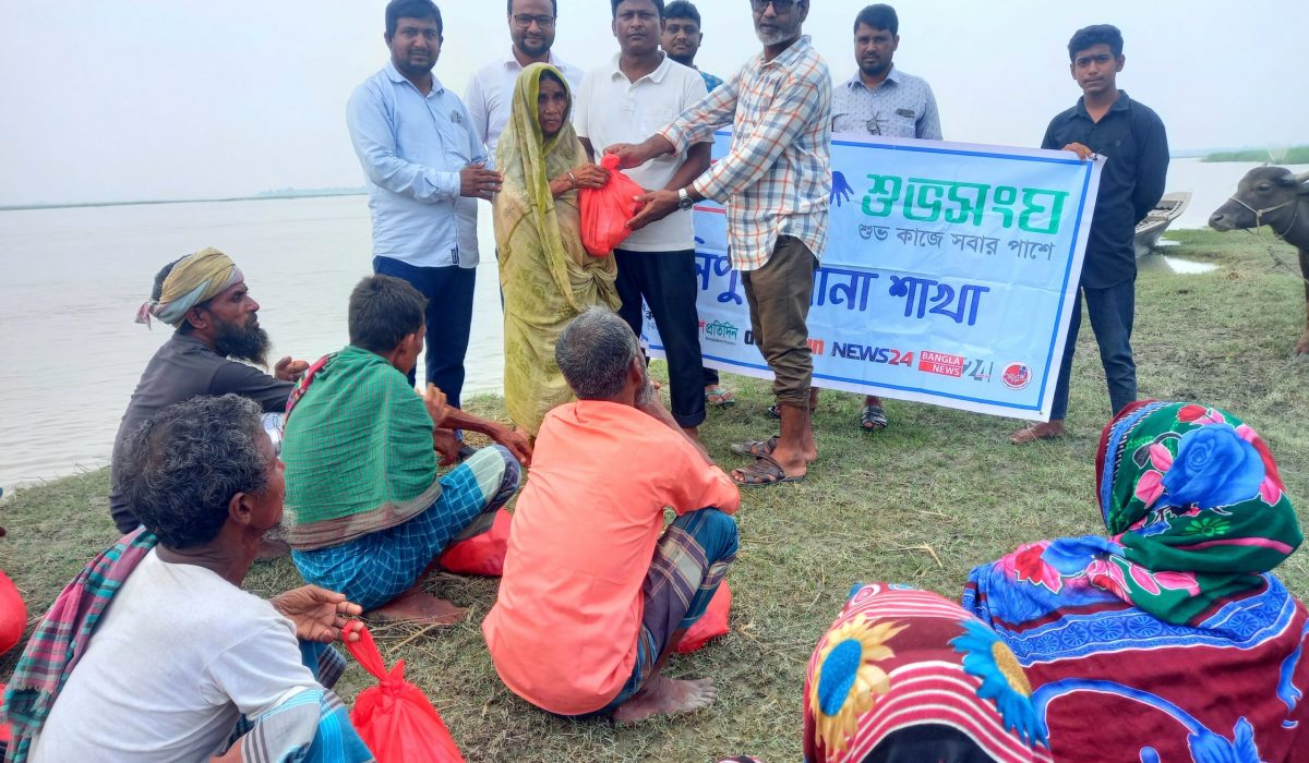 কুড়িগ্রামে বন্যার্তদের মাঝে শুভসংঘের শুকনো খাবার বিতরণ