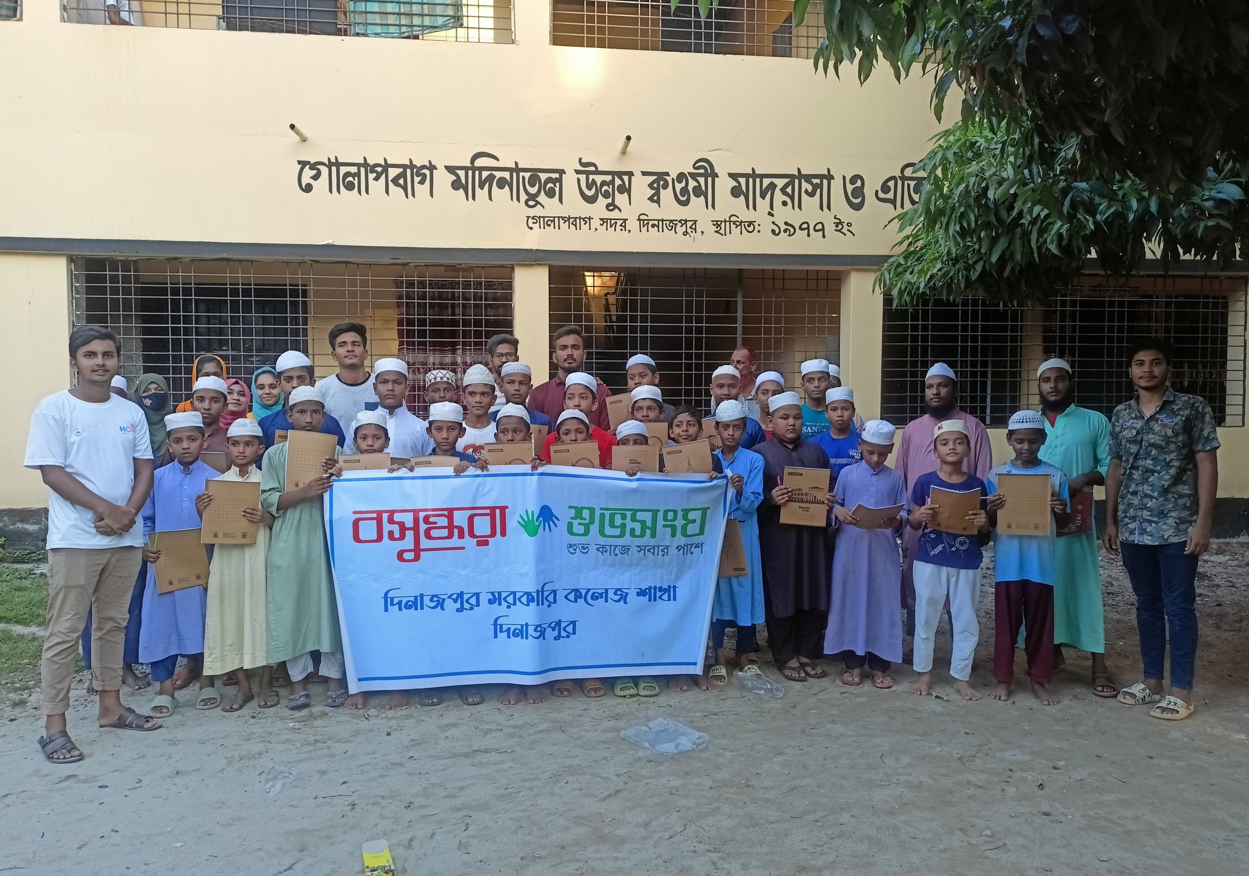 বসুন্ধরা শুভসংঘ দিনাজপুর সরকারি কলেজ শাখার উদ্যোগে মাদ্রারাসা শিক্ষার্থীদের শিক্ষা উপকারণ দেওয়া হয়।