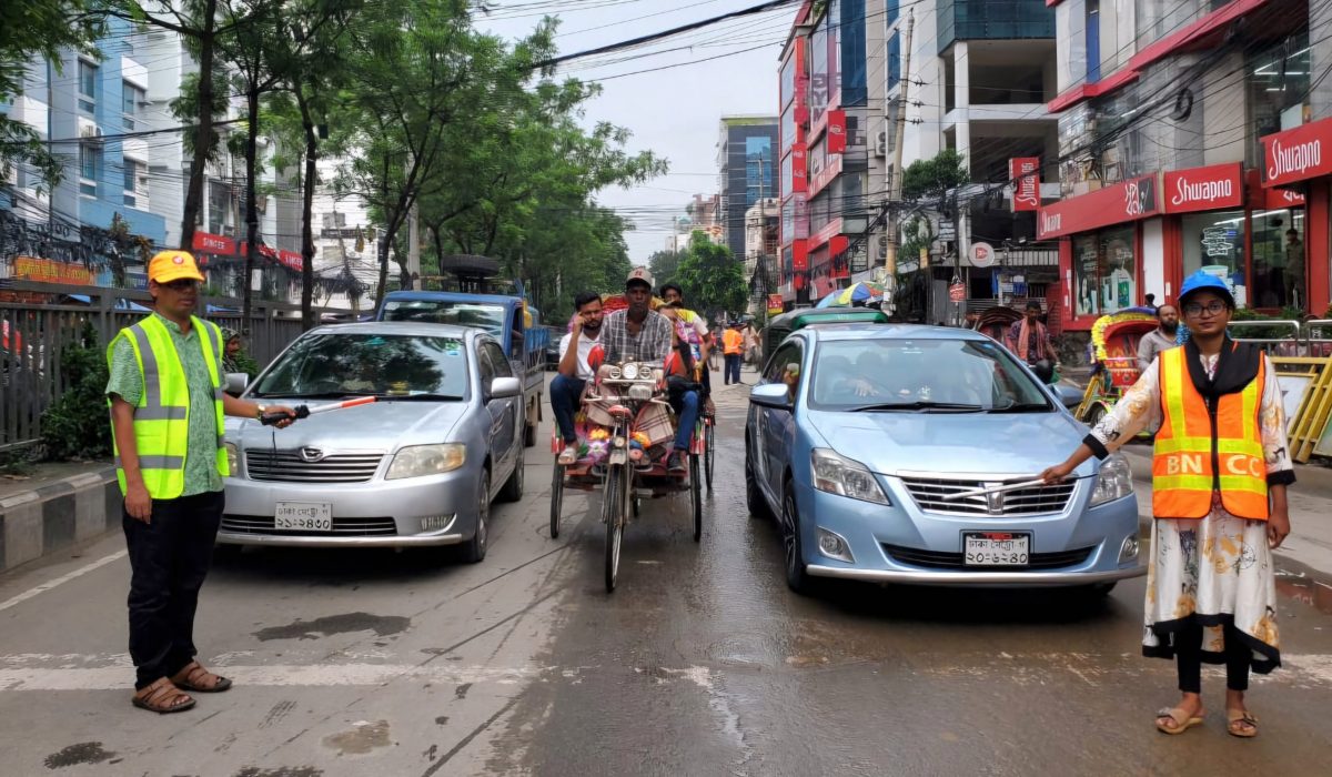 পঞ্চম দিনের মতো ট্রাফিক নিয়ন্ত্রণে বসুন্ধরা শুভসংঘ আইইউবিএটি শাখা